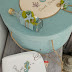 For the exchange I bought a paper mache box from Joann and I covered it up with cotton fabric. The lid is painted with acrylic paint @ Martha Stewart. I made a scissor fob and a greeting card as well and I added few extras for my friend to use on her next projects.
